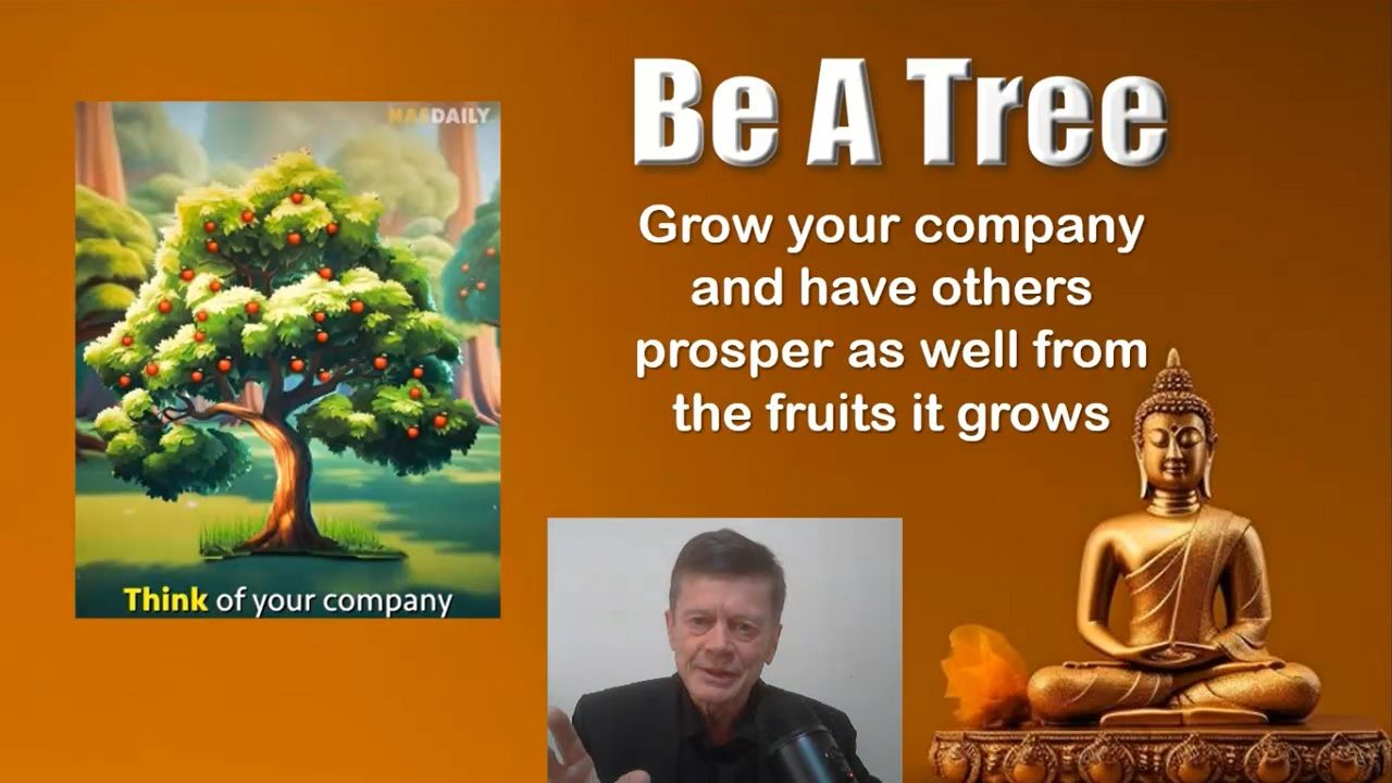 Are you forever chasing your next deal, your next payday, or proudly telling others of a real or even made-up success? To grow spiritually and financially, adopt the philosophy of your company being a fruit-bearing tree from which others benefit. You grow your network, nurture working associates and long-lasting relationships. The rewards are a real meaning and sense of purpose from your “tree”.