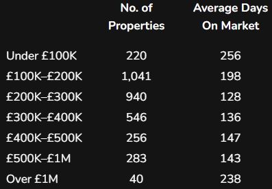 Competition for properties: As per the above chart and data, the most active price range is typically £100,000–£300,000, and these homes tend to sell faster than in southern markets — refer to the above chart and data.