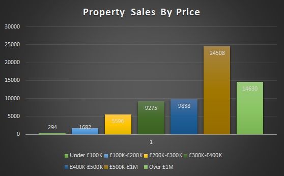 A common consensus among the property investor community is that London is not viable for many strategies due to the exorbitant costs compared to the country north of the M25. Just look at the above sales breakdown in which the highest volume of properties resides in the £500K-£1M bracket.
