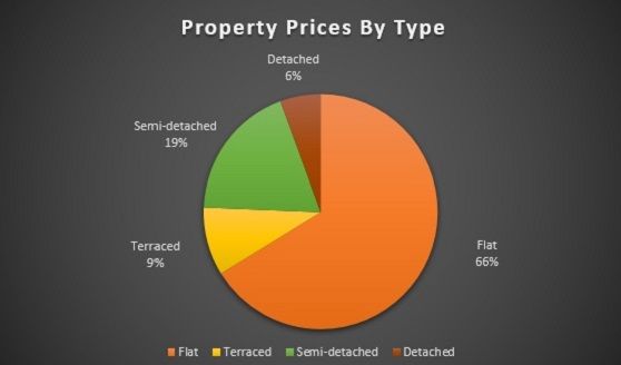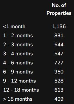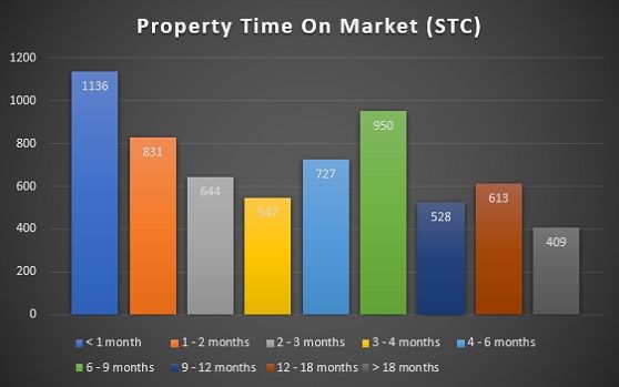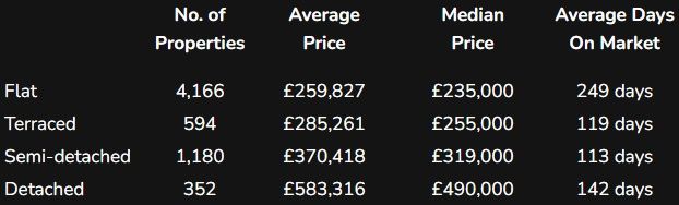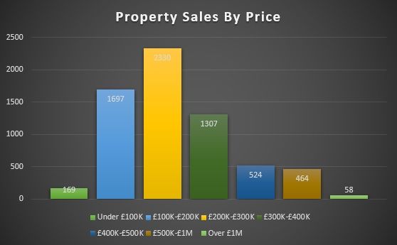 Competition for properties: Reviewing the chart and data above, the biggest cluster of sales activity falls between £100,000 and £400,000, but with average sales days similar to London — possibly due to the aggregation of sales chains from a large population. Noticeably, these three relevant bands between them make up 81.5% of all sales!